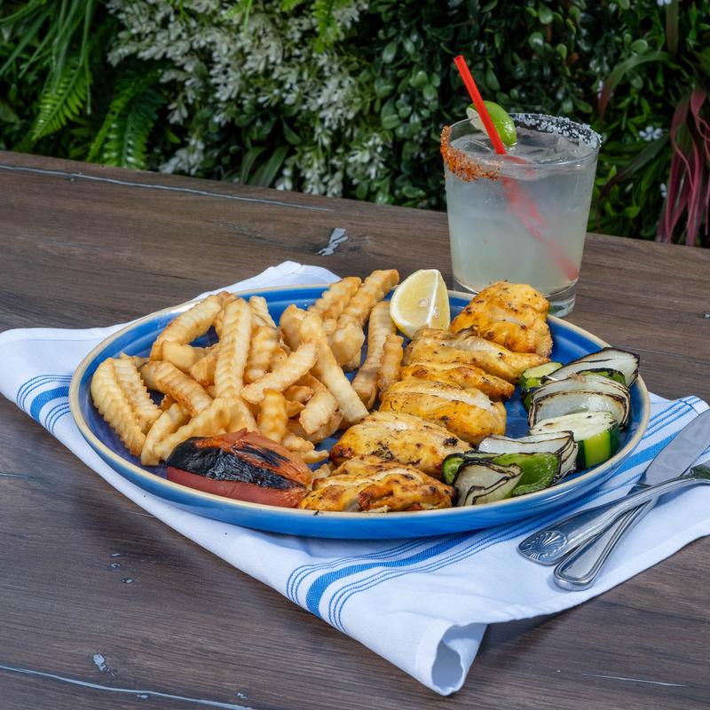 You can enjoy a very nice ocean view, eat indoors or on the outdoor patio near the street but all are nice seats. We shared a delicious shish kabob plate w chicken & salmon, along w rice & salad. A generous plate of hummus & delicious olives. I also ordered a lamb gyro with tasty pita bread. Everything was tasty & well served w excellent service.